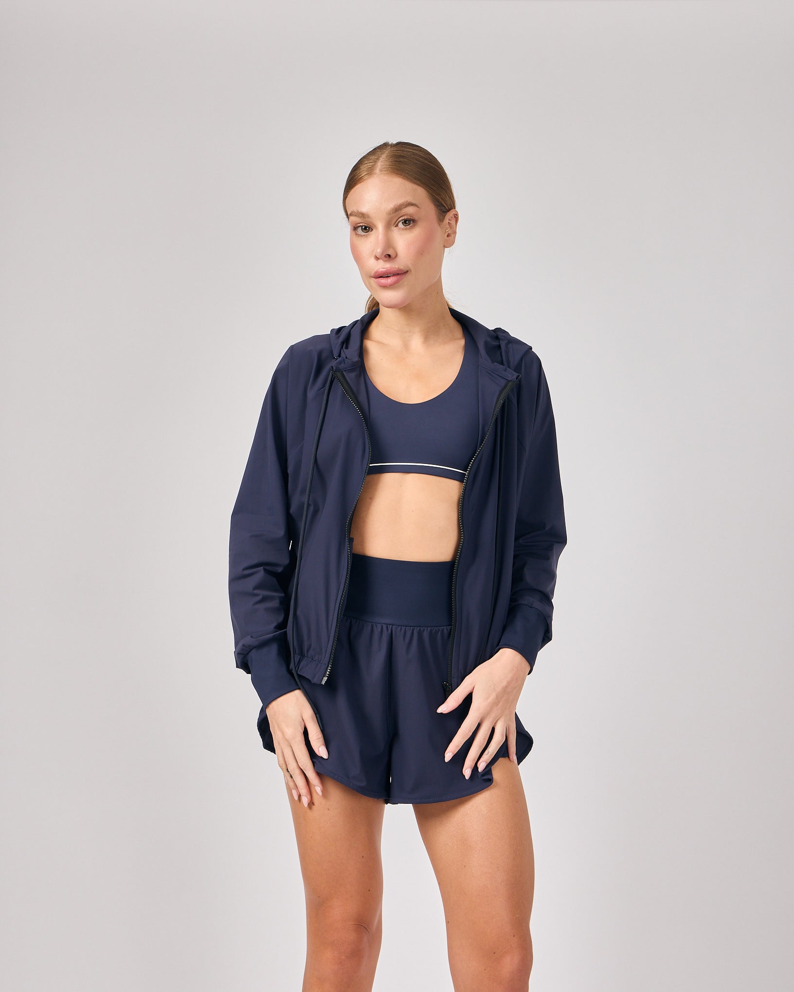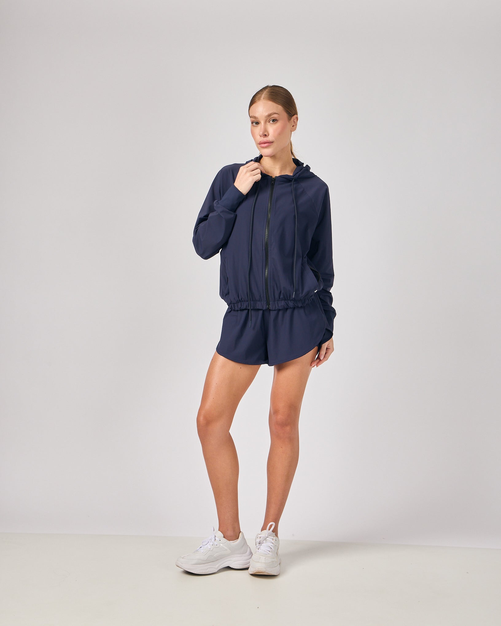 Esta Jaqueta da Linha Club une design minimalista e atemporal em cada detalhe. Confeccionada em tecido estruturado, possui capuz para proteção e bolsos laterais para guardar itens essenciais. O zíper e os cordões com ponteira emborrachada seguem a cor da peça, enquanto o corte bomber mantém silhueta solta e confortável para se movimentar, tornando-a perfeita para complementar looks esportivos ou casuais.