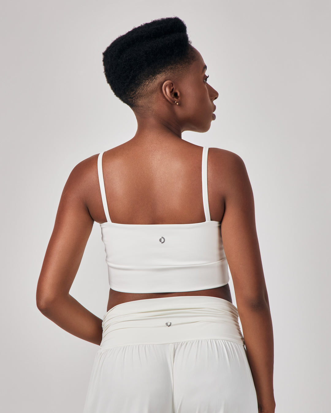 O design minimalista e delicado do Top Alcinha proporciona uma sensação de leveza e firmeza ao mesmo tempo, graças à alça delicada com costuras embutidas e à faixa de tecido mais larga sob o peito, que assegura a sustentação necessária.