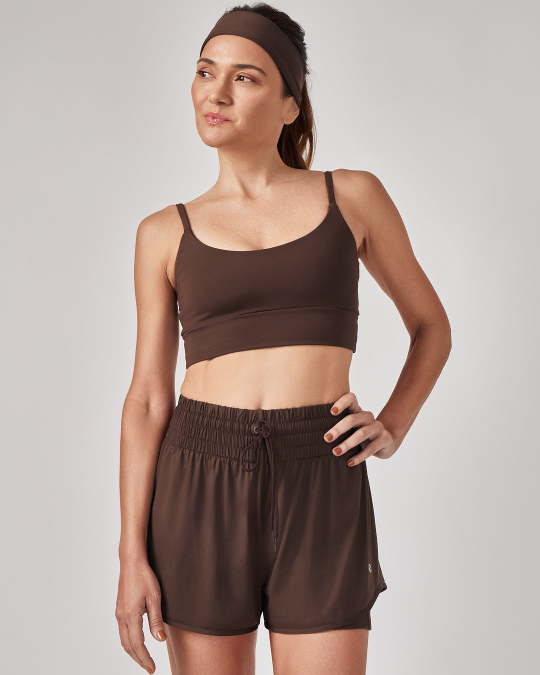 Versátil e confortável, nosso Top Alcinha é perfeito para todas as atividades, garantindo sustentação e liberdade de movimento. Com design minimalista e alça delicada com costuras embutidas.