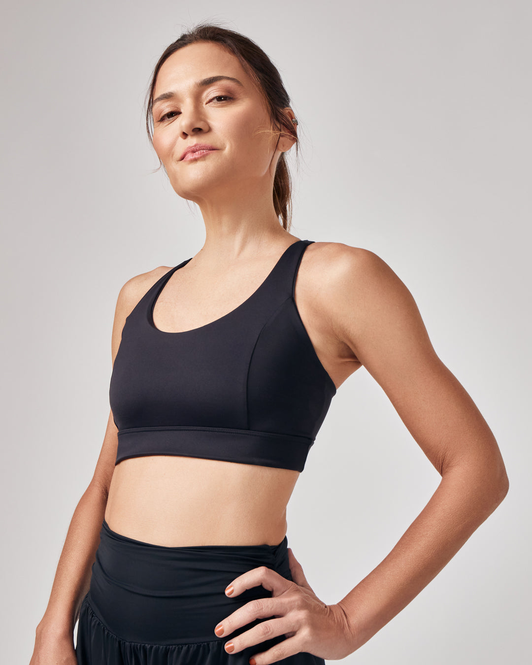 Ideal para esportes intensos, com alças cruzadas nas costas para sustentação. Elástico de 5cm que mantém tudo no lugar.