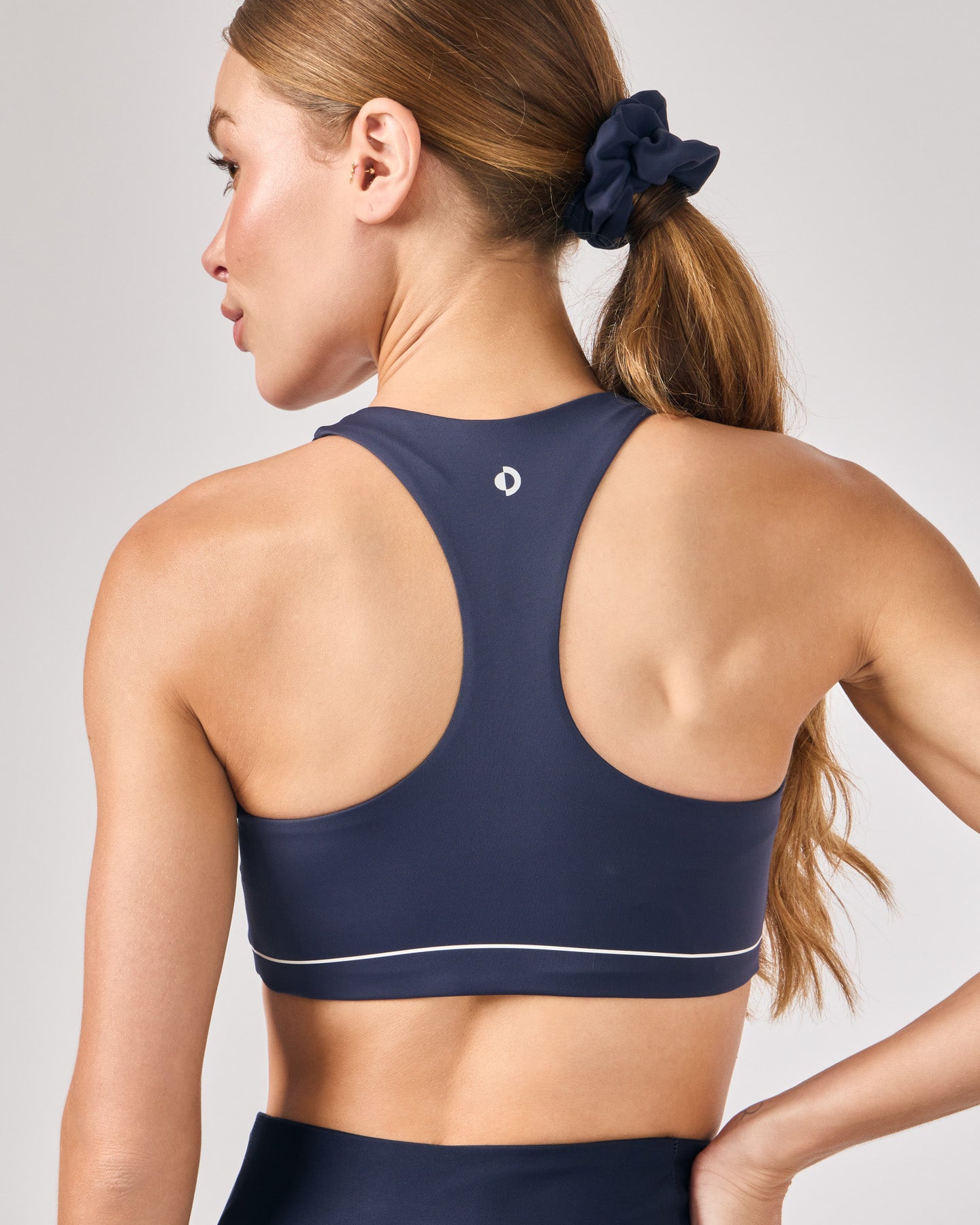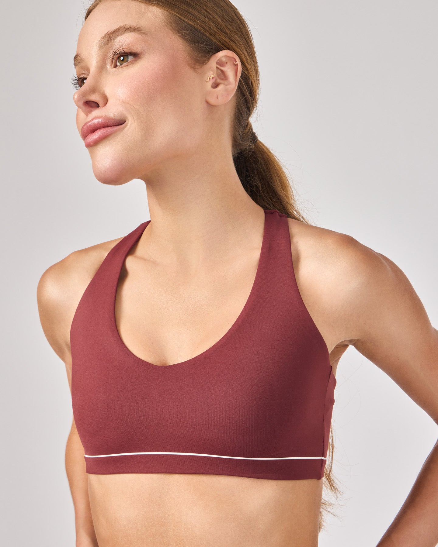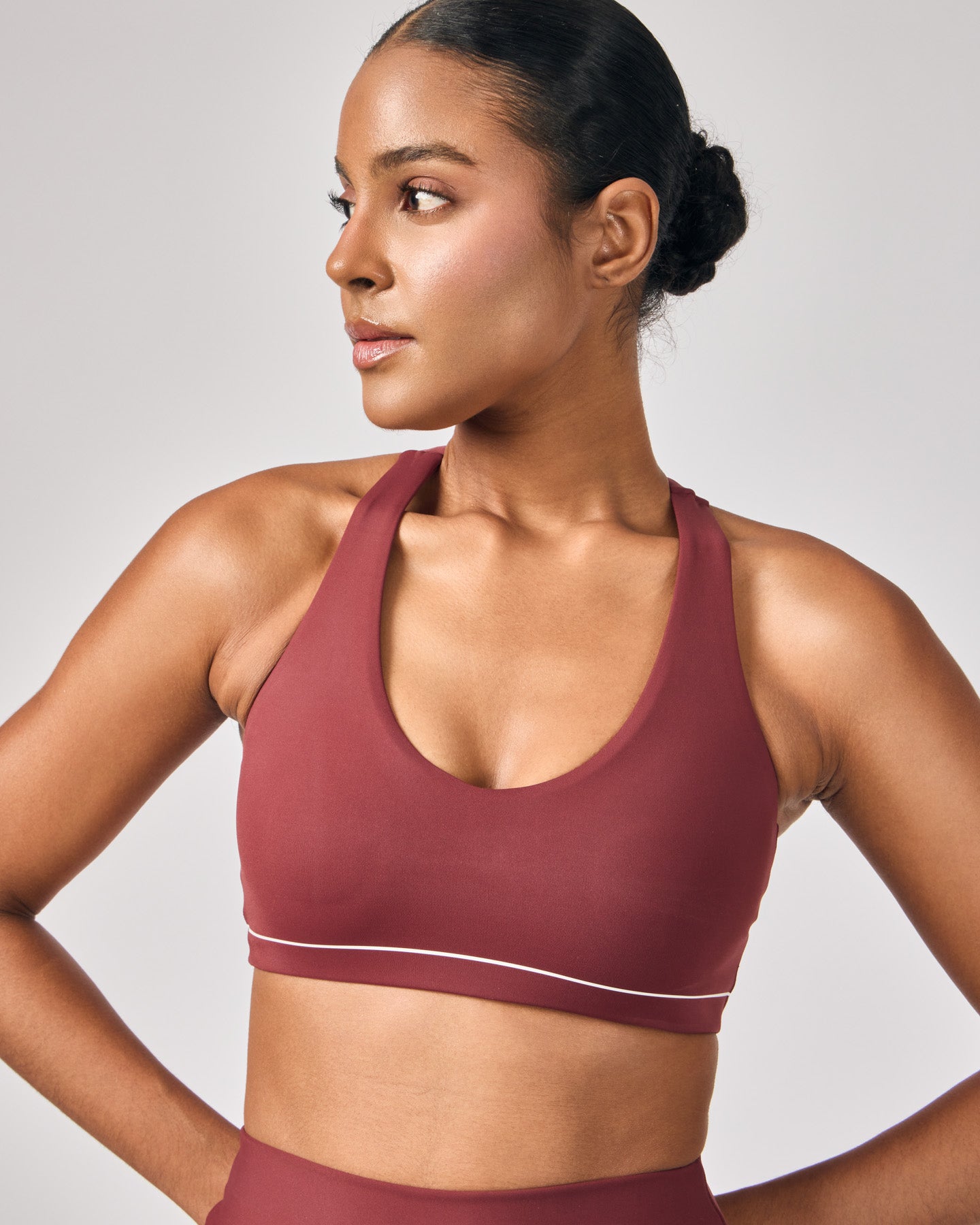 Com alta sustentação para todos os seus treinos, esta peça combina um decote sutil em V arredondado que valoriza o colo e um friso na barra que traz um toque sporty ao visual.